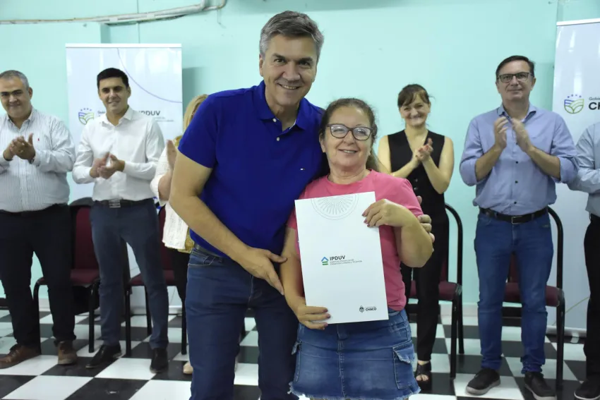 El gobernador Leandro Zdero entregó, este sábado al mediodía, en Gral. Pinedo, 30 títulos de propiedad a vecinos de los barrios 22 Viviendas, 30 Viviendas, 33 Viviendas, 42 Viviendas, 63 Viviendas, 80 Viviendas, 90 y 100 Viviendas. "Hay que preguntarse qué pasó, porque pasaron para algunos 39 años y otros 34, para acceder al título de la vivienda, si fue pagando pesito a pesito la cuota", se preguntó el mandatario provincial.