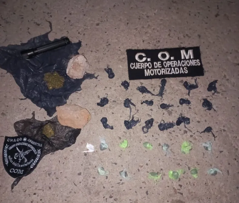 Los efectivos procedieron a revisar el baúl de una de las motos y hallaron una bolsa de nylon con 32 envoltorios con un elemento pastoso color verde, similar a la marihuana. Debido a esto, intervino la División Drogas Peligrosas Charata, realizaron tareas de campo y los resultados arrojaron que se trataba de 42 gramos de Cannabis Sativa.