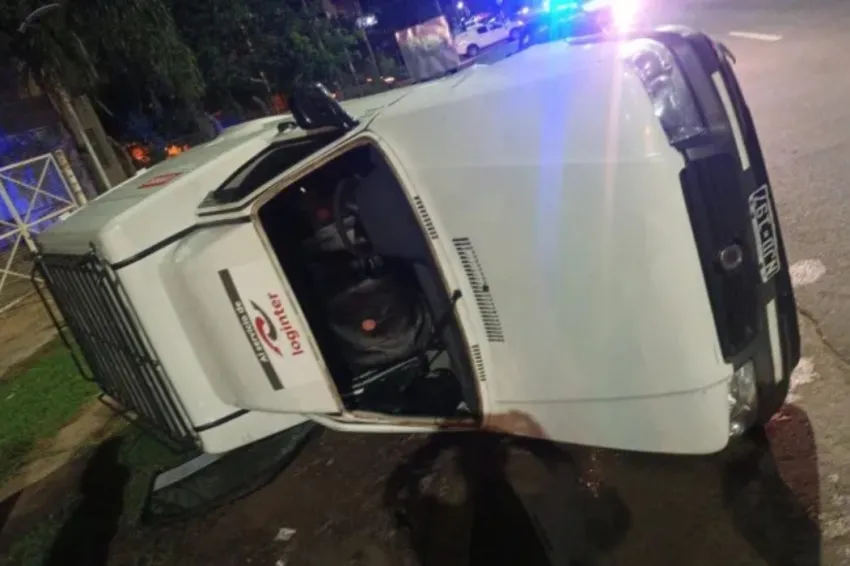 Por el impacto entre ambos vehículos, se puede observar en las imágenes que la camioneta terminó volcada en la acera.