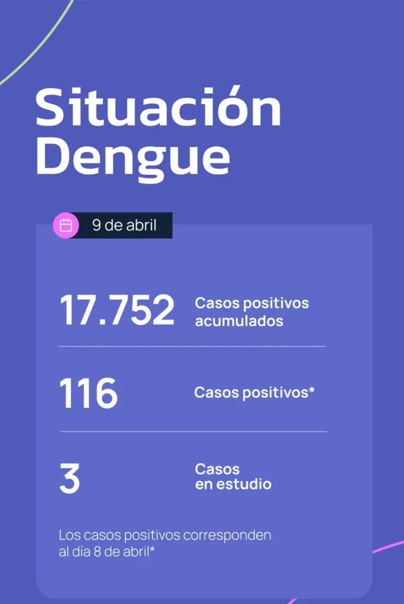De acuerdo al último informe del Ministerio de Salud de la provincia, los casos de dengue en el Chaco llegan hasta el día de la fecha a 17.752. De ellos, hay 116 positivos y hay 3 casos en estudio.