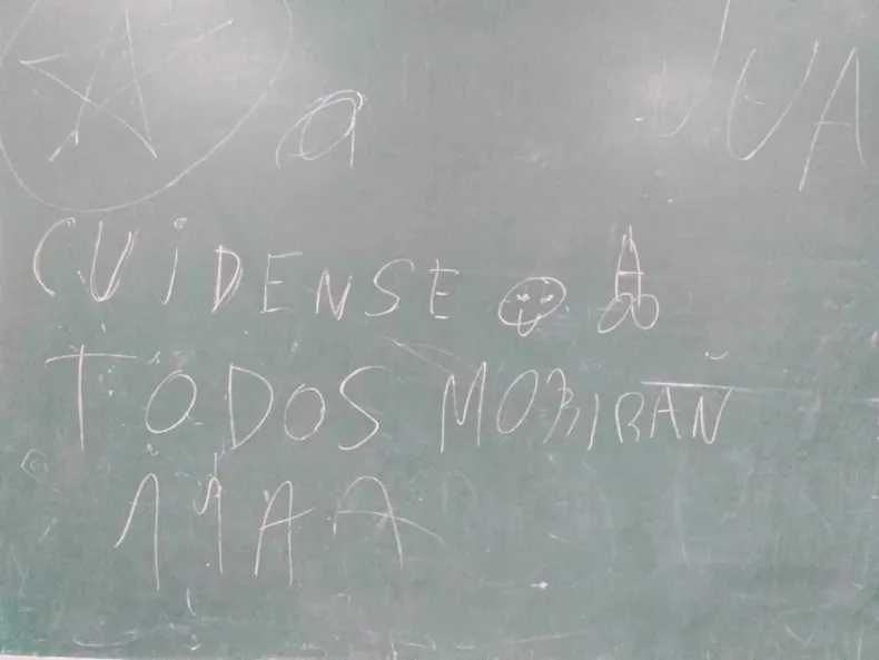 Escrito en pizzaron de la Escuela Primaria 433 Martín de Moussy.