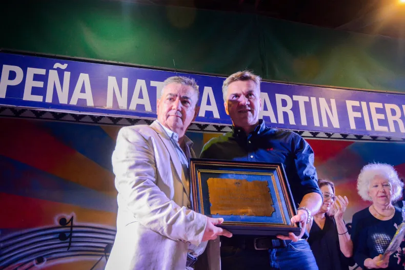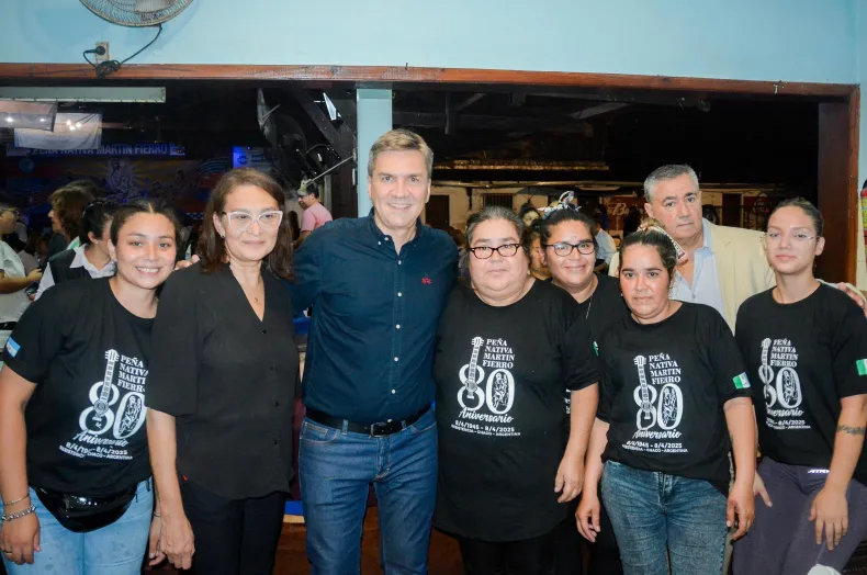 El gobernador Leandro Zdero acompañó en la noche del viernes el 79° aniversario de la Peña Nativa Martín Fierro, en la ciudad de Resistencia. "Muy contento de estar presente en esta institución que ha recibido a muchos folcloristas, a muchos amigos, a todos quienes aman y abrazan la tradición. Agradecerles desde el respeto, la humildad y fundamentalmente desde el orgullo de quienes compartimos el mismo sentimiento por poder estar acá; al presidente, a cada uno de los miembros de la comisión, agradecer a todos los que acompañan el crecimiento y el desarrollo que tiene la Peña Martín Fierro. Es un ícono y un lugar emblemático para nuestra provincia y para la ciudad capital", manifestó el gobernador.