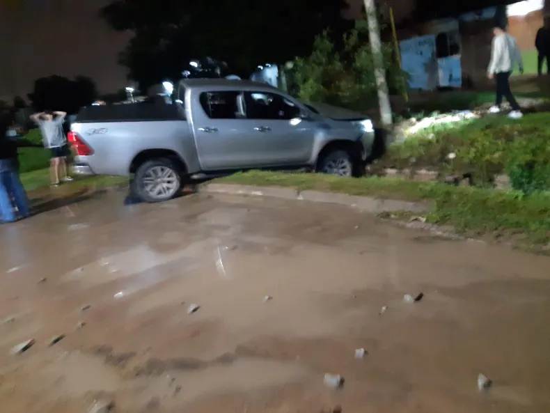 Según señalaron los ocupantes del rodado, el conductor perdió el control del vehículo e impactó contra una cuneta en la avenida 33, quedando el mismo sobre el canal, registrándose daños materiales en el rodado.