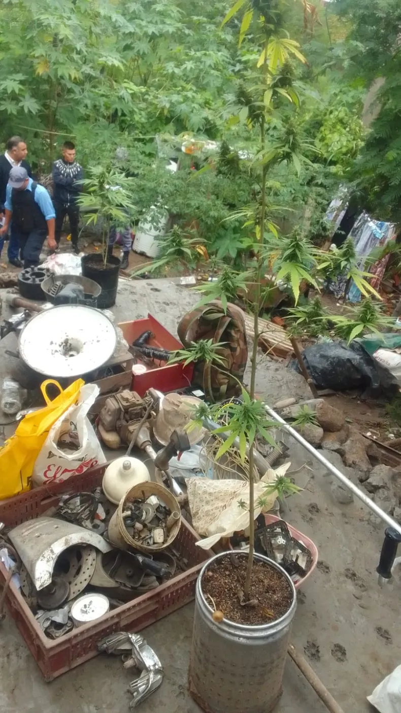 Asimismo, encontraron dos plantines de Marihuana y un frasco con la misma sustancia, que serían de consumo personal, de un joven de 22 años, quien quedó detenido por "Supuesta Infracción al artículo 189 Bis del Código Penal Argentino".