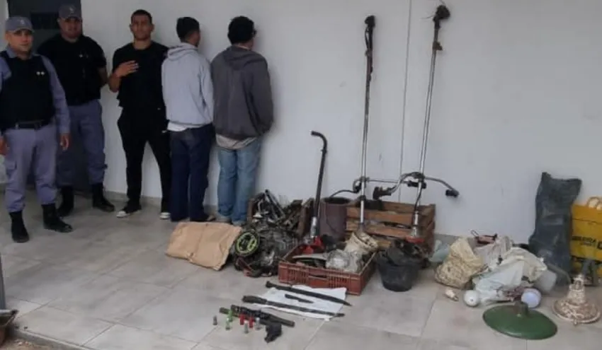 Simultáneamente, verificaron el segundodomicilio, ubicado en el barrio Villa Forestación, donde incautarondos bolsas arpilleras con varios rollos de cobre quedando detenido otro hombre de 53 años. Como secuestro impostergable, un arma de fuego tipo casera; doce cartuchos; dos faroles de gran tamaño (vinculadas a otro robo), varias moto partes; dos desmalezadoras; dos machetes y un cuchillo.
