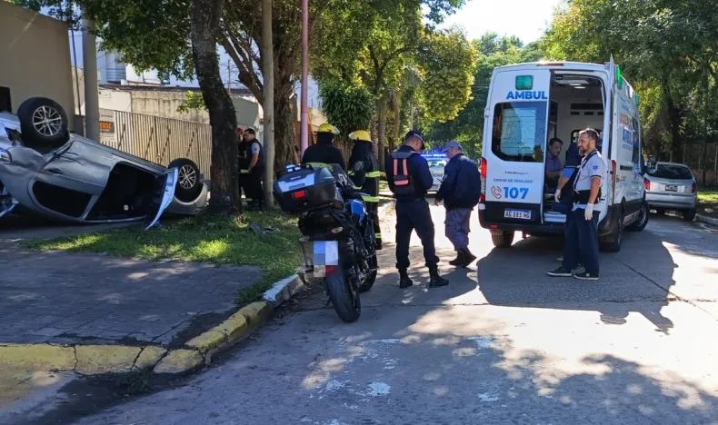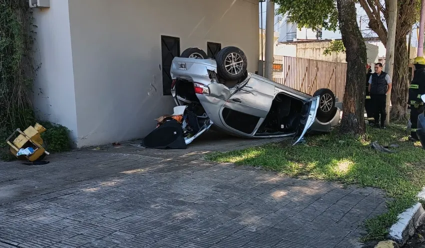 Fuerte accidente: un hombre de 80 años chocó, volcó y quedó atrapado en el interior de su auto