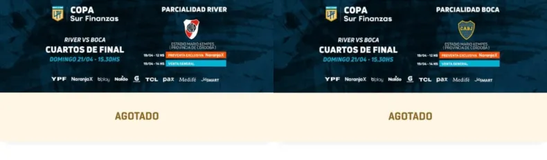 En cuestión de horas, se agotaron las entradas para el Superclásico de este domingo, en el que Boca Juniors y River Plate volverán a jugar con público de ambos equipos por primera vez en los últimos seis años.
