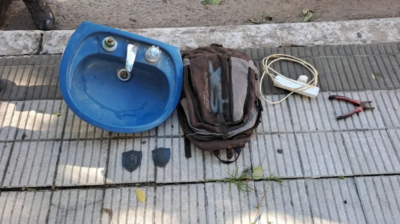 Fue cerca de las 9 de la mañana cuando el personal del Cuerpo de Operaciones Motorizadas se hizo presente en el lugar y ante la situación demoró al hombre que entre sus pertenencias llevaba una pileta de baño con su respectiva canilla, un alargue y una pinza, sin embargo, no pudo dar cuenta de que fueran suyas.