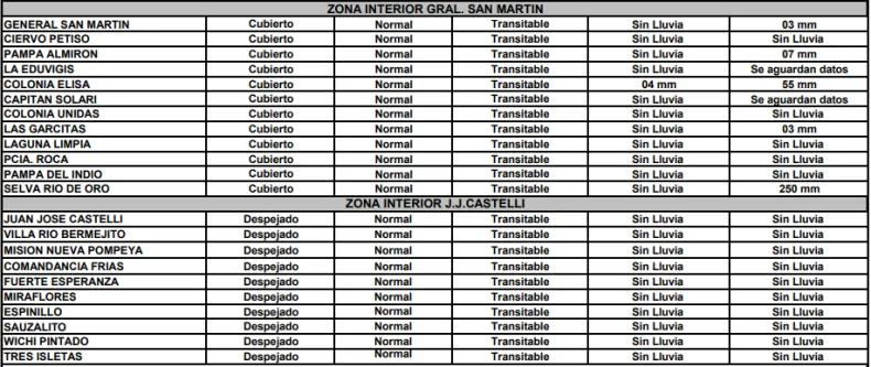 La localidad donde más llovió durante el mediodía y la siesta de este lunes fue Selva Río de Oro, del departamento de General San Martín, donde cayó 250mm de lluvia.