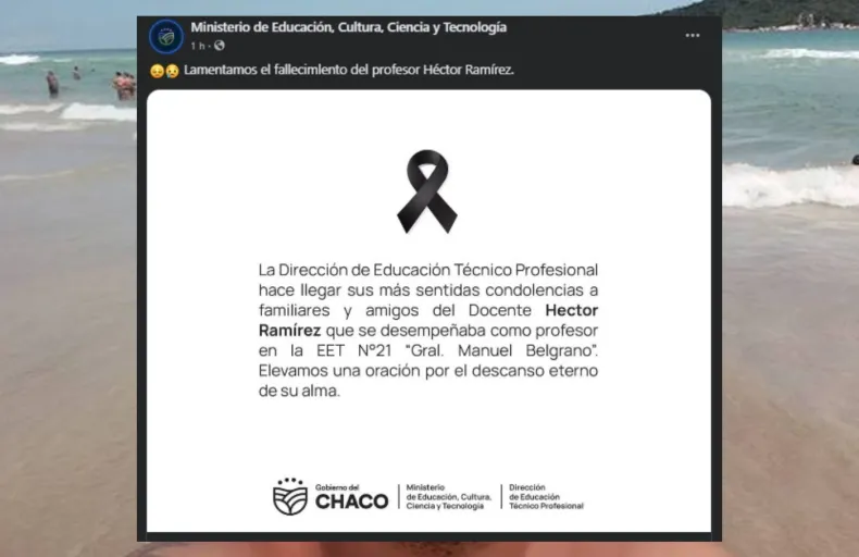 Héctor Ramírez tenía 49 años y falleció este lunes, trabajaba en la ciudad de Resistencia como docente del Colegio Integral Piacentini y la E.E.T N° 21 "Gral. Manuel Belgrano" y en las redes sociales se pudieron ver varios mensajes de despedida tanto de familiares, amigos, colegas, alumnos y del Ministerio de Educación, Cultura, Ciencia y Tecnología.