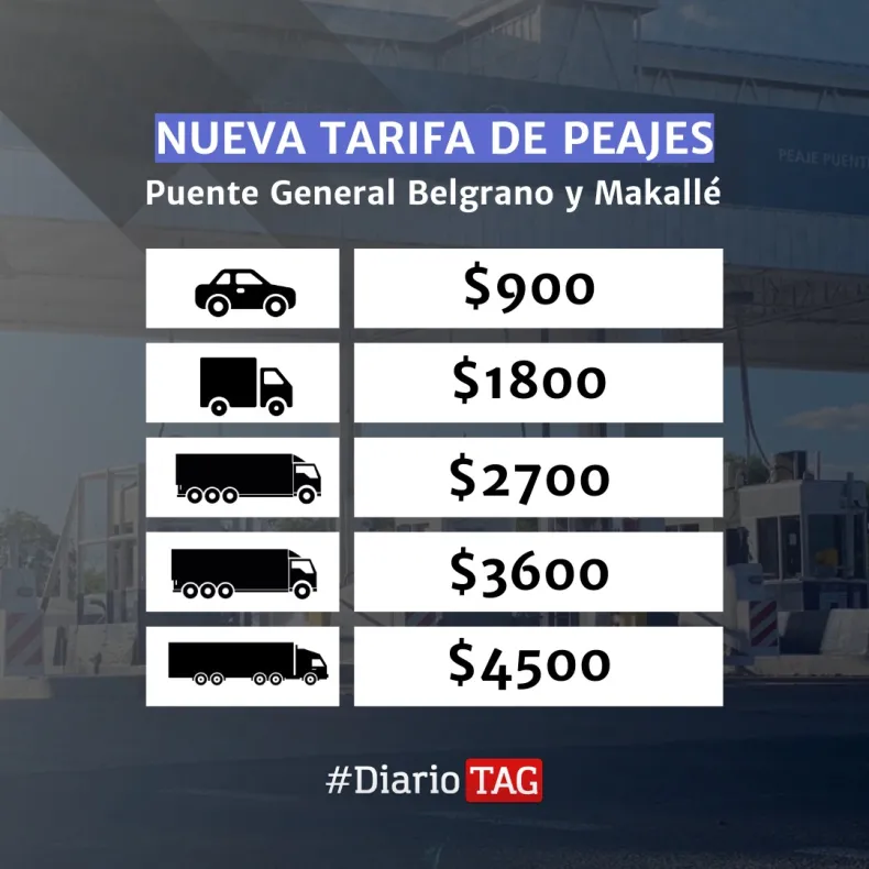 Las nuevas tarifas para vehículos se desglosan de la siguiente manera para el peaje Puente General Belgrano: