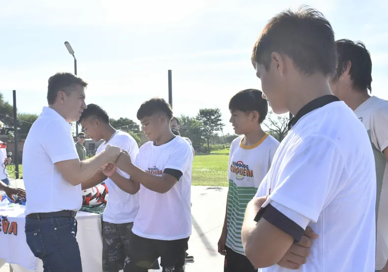 El Gobernador inauguró un playón deportivo y entregó indumentaria en Presidencia Roca