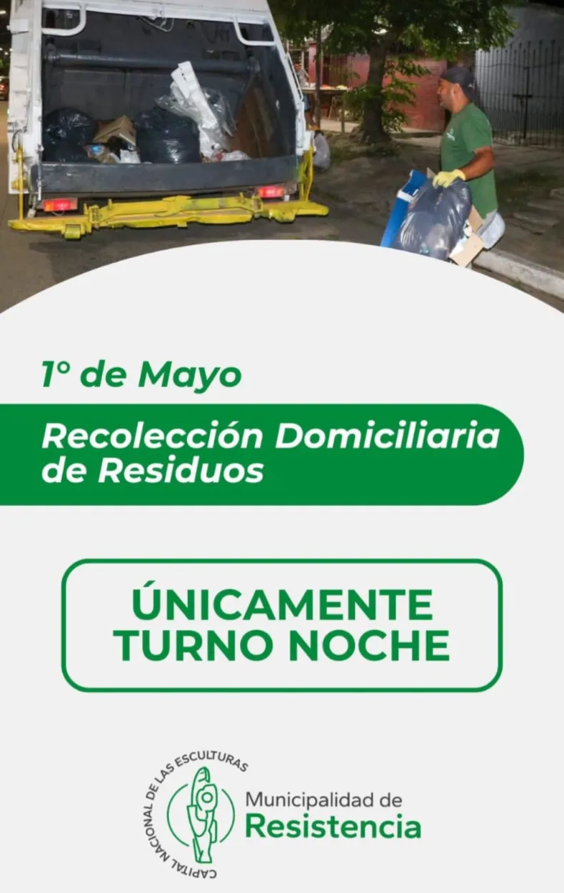 Este 1° de Mayo es el Día Internacional del Trabajador, es por ello, que desde la municipalidad de Resistencia y de Sáenz Peña publicaron cómo será la recolección de residuos.