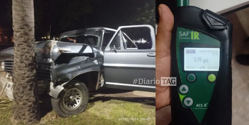 Manejaba con 2,5 de alcohol en sangre, perdió el control de la camioneta y chocó contra una palmera