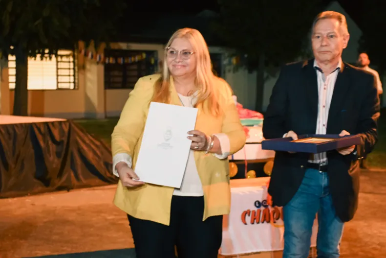 La Presidente de la Legislatura Carmen Delgado junto al diputado Juan José Bergia acompañaron la celebración de los 50 años de la Escuela Secundaria N°81 "Juana Azurduy de Padilla", acto que contó con la presencia del Gobernador Leandro Zdero.