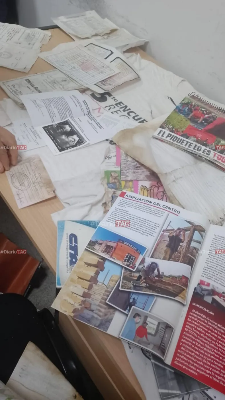 Cabe destacar que todas estas pertenencias se encontraban en la basura, donde el hombre pudo observar fotografías personales de Marcela Acuña y de los Sena, archivos DVD Y CD, objetos religiosos varios, folletería y revistas del movimiento, documentación referida a la E.P.GS. Nº2, videos en la caja de VHS sobre viajes, dos chombas, una remera de la E.E.T. Nº 21, y varios elementos sin descripción y anotaciones manuscritas.