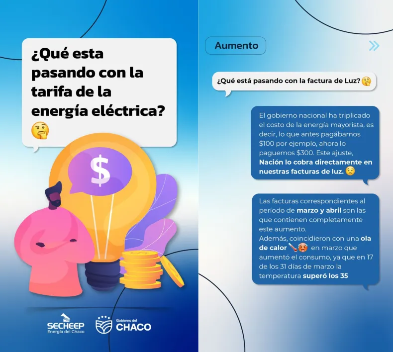 "La situación actual de la factura de luz en la provincia del Chaco, es el resultado de una serie de ajustes tarifarios y cambios en la política de subsidios energéticos a nivel naciona l. El gobierno nacional ha implementado un aumento significativo en donde se triplicó el costo de la energía mayorista", explicaron desde SECHEEP.