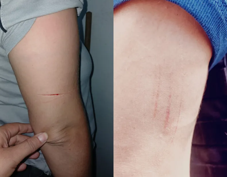 - Agente S.E.L.: "Eritema en región escapular derecha, eritema en cara posterior tercio superior de brazo derecho y Excoriación en cara posterior tercio inferior de brazo derecho", 7 días de curación.