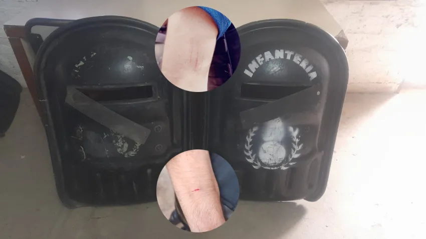 Asimismo, se constataron daños en el equipo de protección integral portado por el personal de Infantería, siendo estos: rotura con desprendimiento de visor de dos escudos de fibra de vidrio.