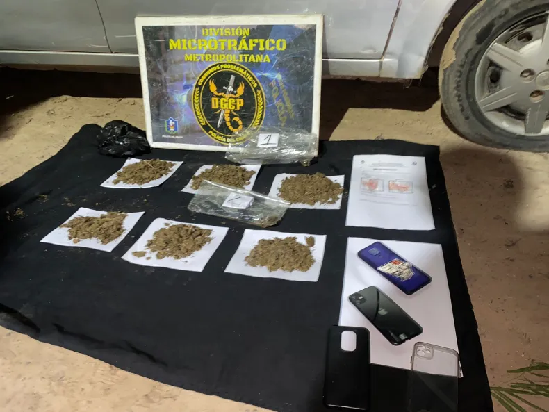 El hombre de 24 años llevaba consigo una bolsa de arpillera que contenía 537 gramos de marihuana, así como también un teléfono Iphone 11 y un Motorola G9 play. Fue arrestado por presunta infracción a la Ley de Estupefacientes y se le confiscó el vehículo en el que se desplazaba, un Chevrolet Corsa.