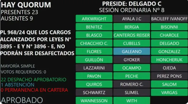 Con 23 votos afirmativos, la Cámara de Diputados del Chaco aprobó el proyecto que establece, de manera excepcional y por única vez, la protección de los cargos u horas cátedra vacantes ocupados por personal docente, según lo establecido en las Leyes N° 3895 - E y N° 3896 – E. La misma, busca brindad estabilidad y seguridad laboral al personal docente.