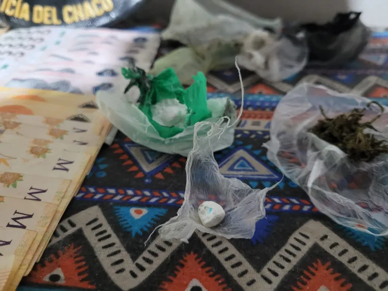 Los efectivos secuestraron 17 gramos de cocaína y un envoltorio de marihuana, además de recortes de nylon y $ 50 mil.