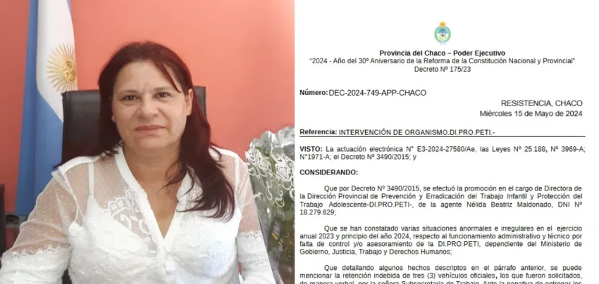 A través del decreto N° 175/23 con fecha del 15 de mayo, el Ejecutivo provincial resolvió "la Intervención de la Dirección Provincial de Prevención y Erradicación del Trabajo Infantil y Protección del Trabajo Adolescente -DI.PRO.PETI. -, dependiente del Ministerio de Gobierno, Justicia, Trabajo y Derechos Humanos, a partir de la fecha del presente instrumento legal, y por un plazo de ciento ochenta (180) días".