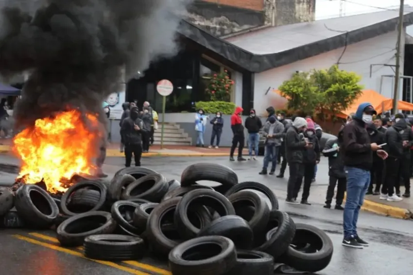 Al mediodía, los agentes iniciaron una quema de gomas sobre la avenida Uruguay, una de las principales de la ciudad y cortaron el tránsito. Momentos después, el Juez de Instrucción, Ricardo Valor, se reunió con voceros de la Policía, para destrabar la situación, pero los oficiales le aseguraron que "no lo van a hacer".