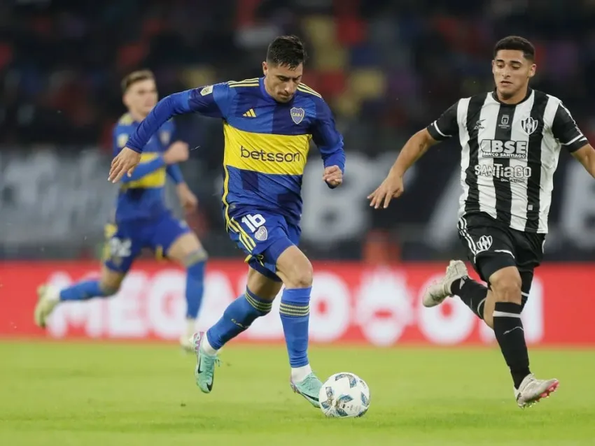 El xeneize inició el encuentro en el estadio Madre de Ciudades de Santiago del Estero con una dupla central integrada por los juveniles Lautaro Di Lollo y Mateo Mendía como novedad.