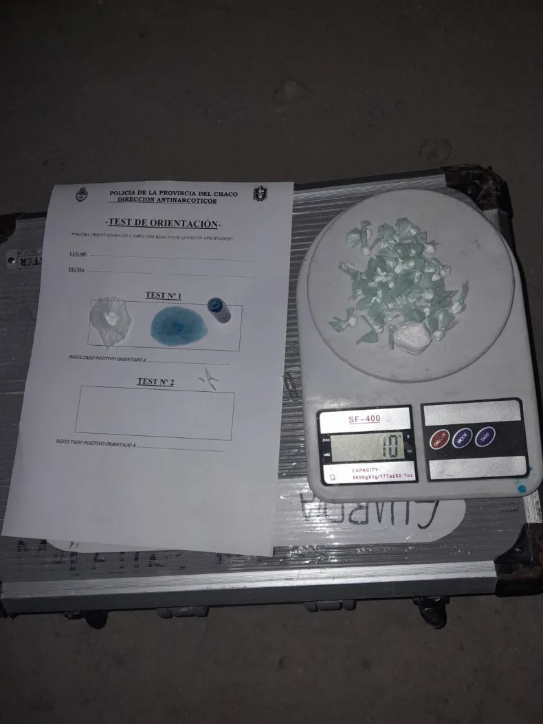 La presencia de los antinarcóticos fue solicitada de inmediato. Tras realizar una prueba de campo, los efectivos de Microtráfico confirmaron que se trataba de cocaína con un peso total de 10 gramos. Además, se labró un acta de secuestro del estupefaciente, del revólver calibre 22 con 9 cartuchos, la suma de $ 104.650 y el automóvil Fiat Siena.