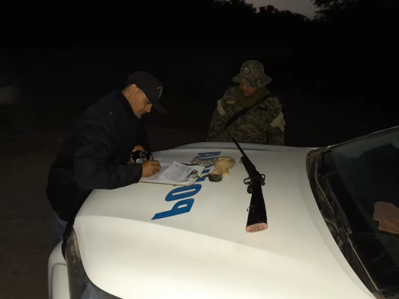 En la noche de este domingo, dos hombres fueron sorprendidos por efectivos de la Sección Rural Pampa del Infierno y Pampa del Guanaco, en cercanía de Los Frentones. En su poder secuestraron dos animales y un arma de fuego, estaban cazando sin autorización. Por ello fueron notificados por infracción a la Ley de Caza.