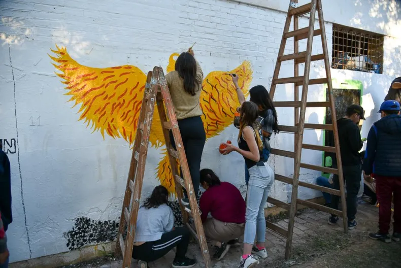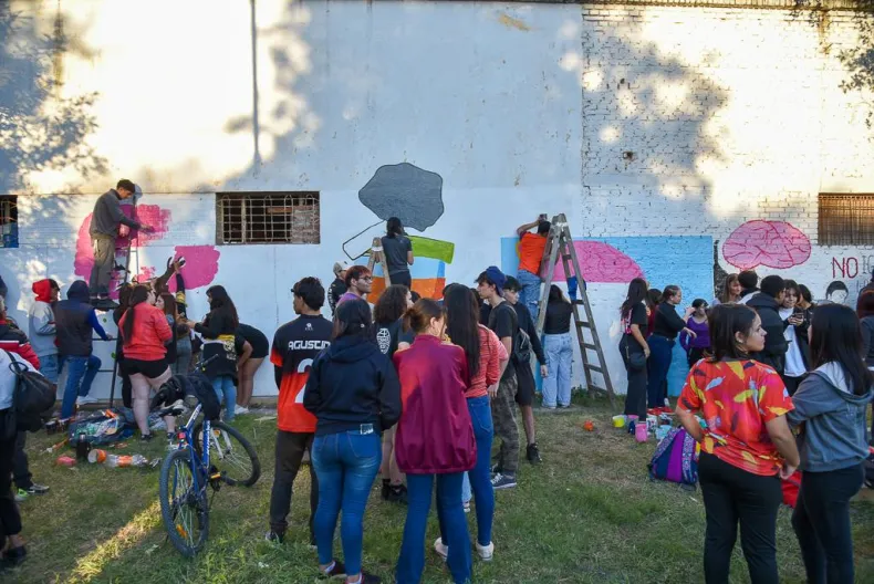 Estudiantes de colegios secundarios pintaron murales sobre la salud mental