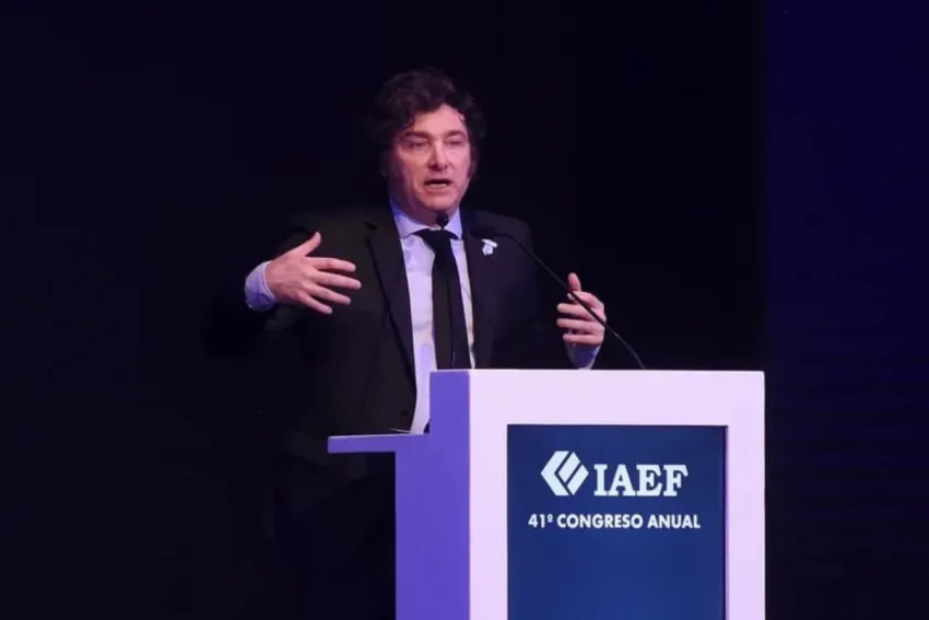 En el 41º Congreso del Instituto Argentino de Ejecutivos de Finanzas (IAEF), Milei presentó lo que llamó el "modelo de dolarización endógena" de su propuesta de Gobierno.