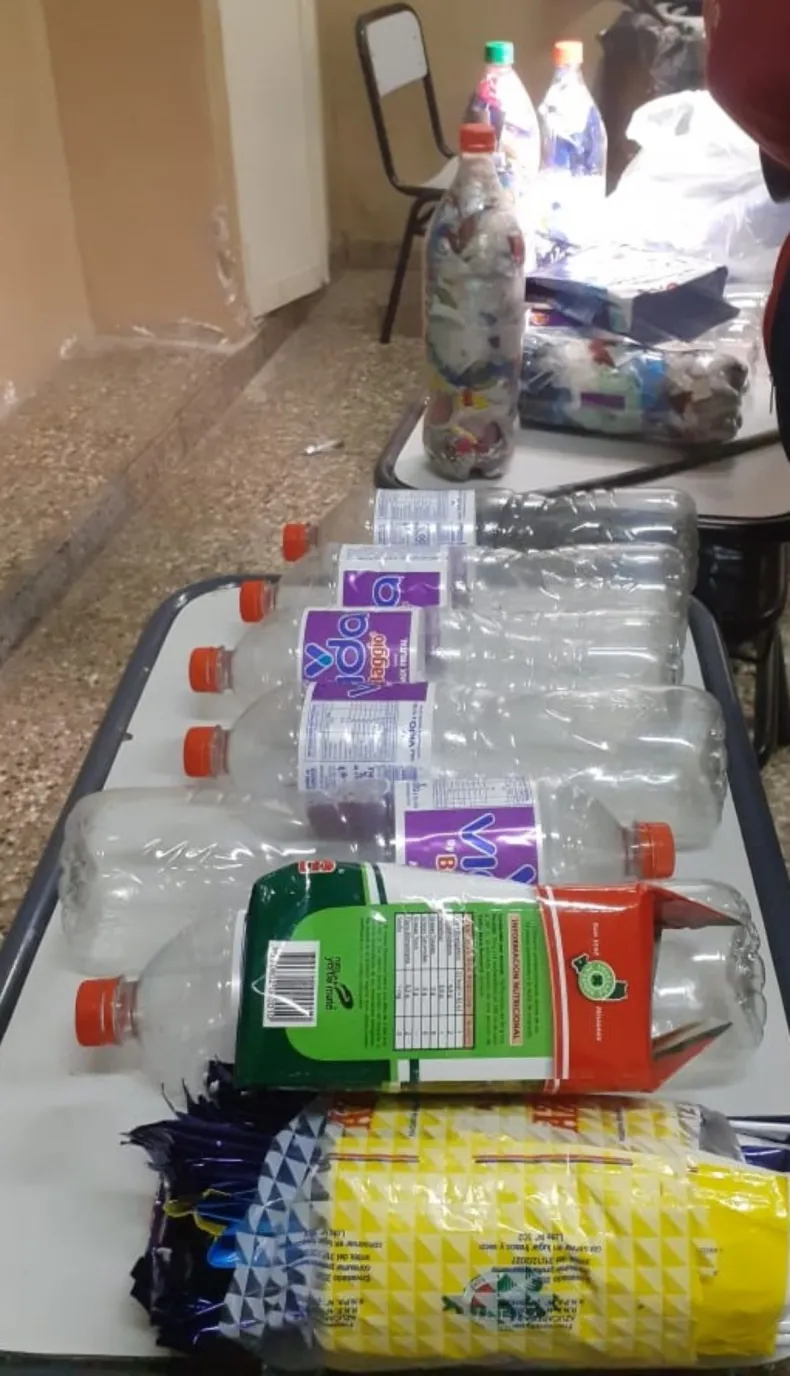 Señaló además que con este proyecto los niños toman conciencia de toda la basura que cabe dentro de una botella y tenemos unos palitos con los cuales hacemos presión para seguir incorporando restos de papeles. "Ellos están sorprendidos de esta actividad, no habían hecho anteriormente y están sorprendidos de la cantidad que cabe dentro de la botella". Luego de eso se van a ir armando los "eco ladrillos".