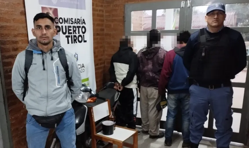 Los implicados fueron tres hombres de 28, 36 y 37 años y secuestraron una motocicleta, una jarra negra, una botella de whisky, un arma blanca de 30 centímetros.