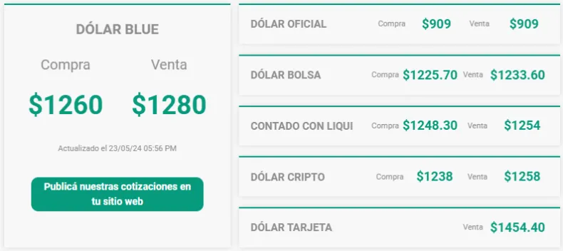 El dólar blue cerró en $ 1.280 tras alcanzar los $ 1.300