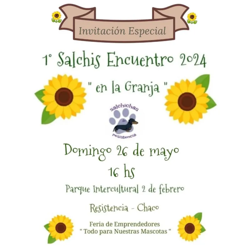 El 11° Salchis Encuentro se realizará este domingo 26 de mayo a las 16 horas en el Parque 2 de Febrero. Este año, el evento tendrá como tema "En la Granja", prometiendo ser una experiencia inolvidable para los amantes de los perros salchichas y sus familias.