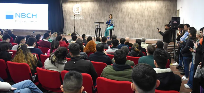 "Nuestra presencia aquí es un testimonio de nuestro compromiso con el desarrollo de la provincia y con la formación de jóvenes talentos", expresó Claudia Bernardis directora de NBCH al presentar a Mateo Salvatto en el auditorio de la Facultad de Ciencias Económicas de la UNNE dónde se realizó el cierre de la jornada.