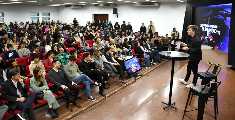 Ante un auditorio lleno, el joven emprendedor tecnológico destacó las oportunidades y el desafío de la inclusión para promover un futuro mejor.