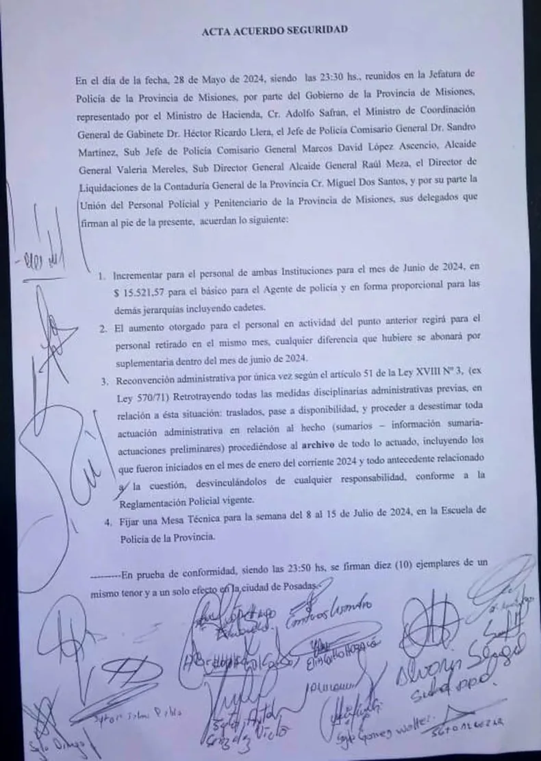 Las fuerzas de seguridad de la Provincia de Misiones llegaron a un acuerdo con el Gobierno y levantaron el acampe que llevaba 12 días frente al comando radioeléctrico de Posadas. El incremento se trató de apenas $ 15.521 que se agregará al básico de los agentes a partir de junio y se aplicará de manera proporcional a cada jerarquía.