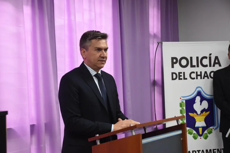 Zdero, acompañado de la vicegobernadora Silvana Schneider, del ministro de Seguridad, Hugo Matkovich, el ministro de Gobierno Jorge Gómez, la secretaria general de Gobierno, Carolina Meiriño, la jefa del Depto. de Violencia Familiar y de Género, Claudia Lucena y el Jefe de la Policía, Fernando Romero agradeció a todas las áreas vinculadas, como ser los ministerios de Gobierno y Seguridad, la Policía del Chaco y el Departamento de Violencia Familiar y de Género.