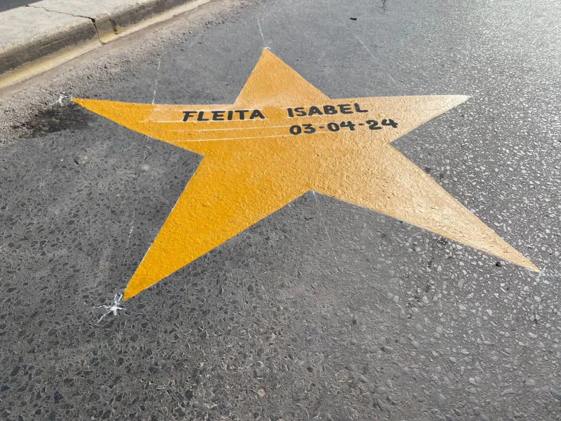 Este lunes 3 de junio se pintó una nueva estrella amarilla en la Avenida Castelli 1700 aproximadamente de la ciudad de Resistencia, en memoria de Isabel Fleita, quien falleció en un siniestro vial el 3 de abril de 2024.