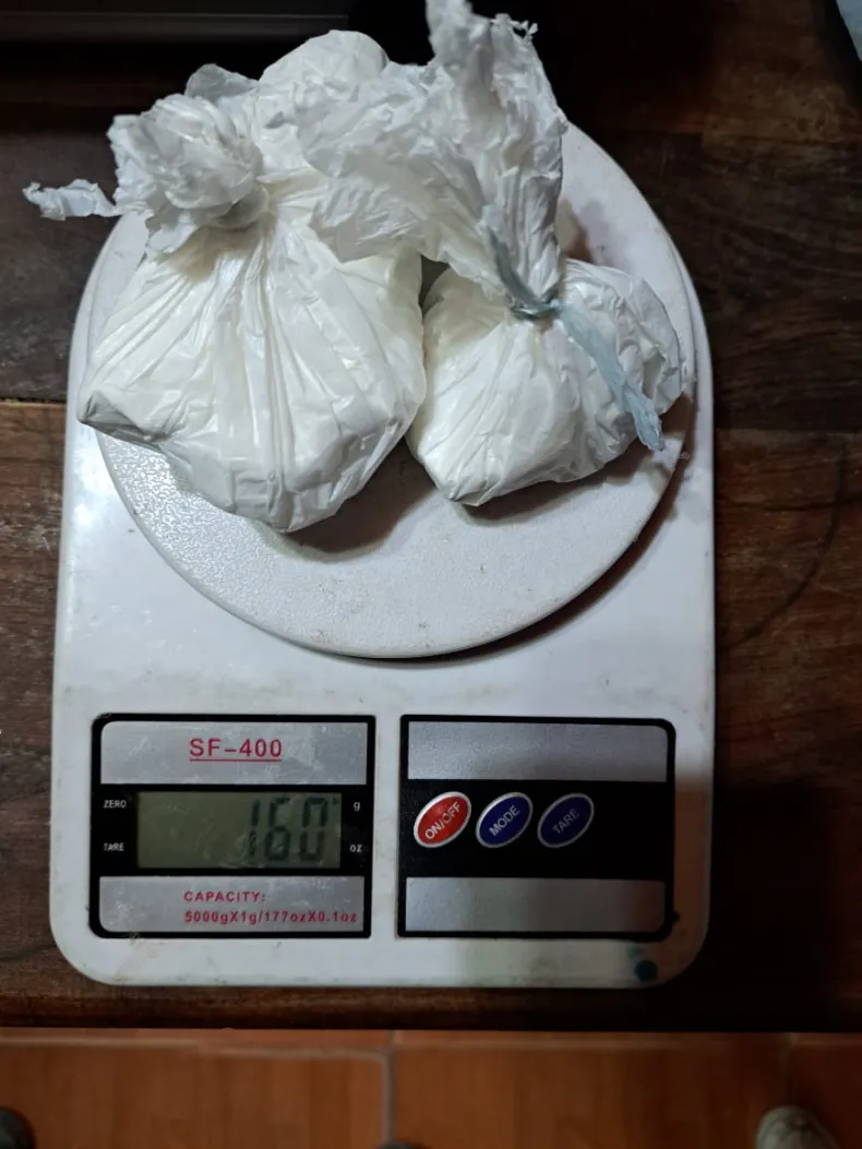 Además, encontraron dos envoltorios con una sustancia blanca, una balanza, $ 246.700, 4 dólares, 9 lámparas led, cuatro cámaras de seguridad, un posnet y una llave hexagonal. Ante ello, solicitaron la colaboración del personal de Drogas, quienes realizaron la prueba de campo a la sustancia, arrojando como resultado cocaína con un peso de 160 gramos, estos elementos fueron secuestrados como impostergables.