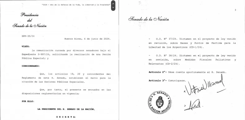 La sesión en el Senado por la Ley Bases y el paquete fiscal será el miércoles 12