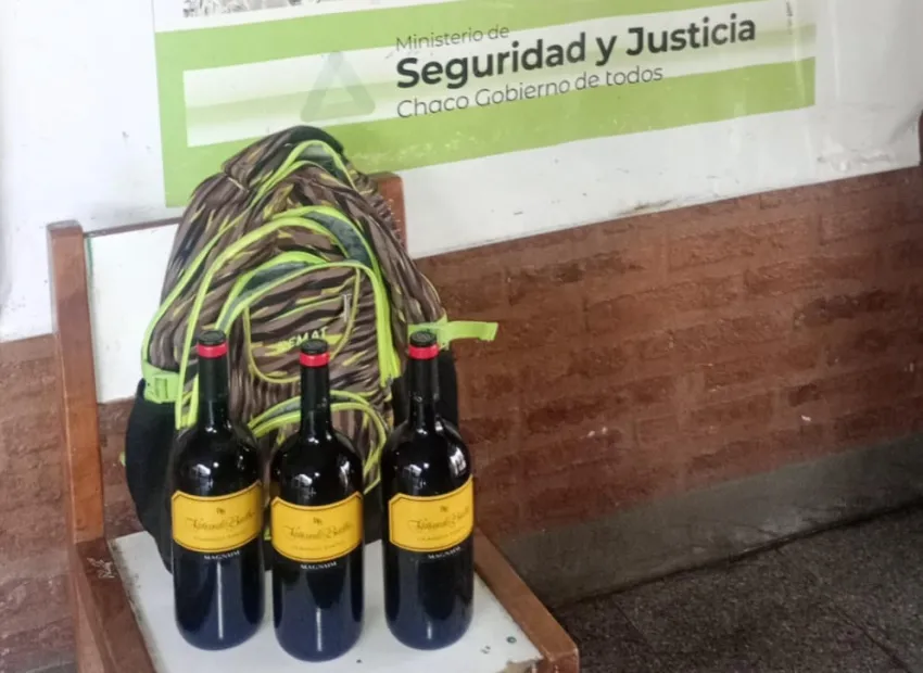 Inmediatamente, los agentes iniciaron las pesquisas y, tras recolectar información, se dirigieron al barrio Los Aromos. Allí, demoraron a un adolescente de 16 años que tenía similares características al delincuente filmado. En su poder, tenía la mochila con tres vinos denunciados como robados.