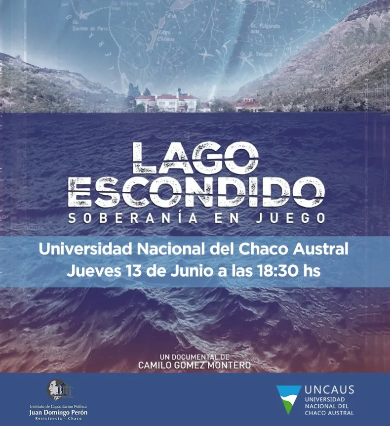"Lago Escondido. Soberanía en juego", el documental sobre la defensa del territorio nacional, del director correntino Camilo Gómez Montero, llega a Sáenz Peña gracias al aporte de la Universidad Nacional del Chaco Austral y Julio Rene Sotelo, Presidente del Instituto Juan Perón.