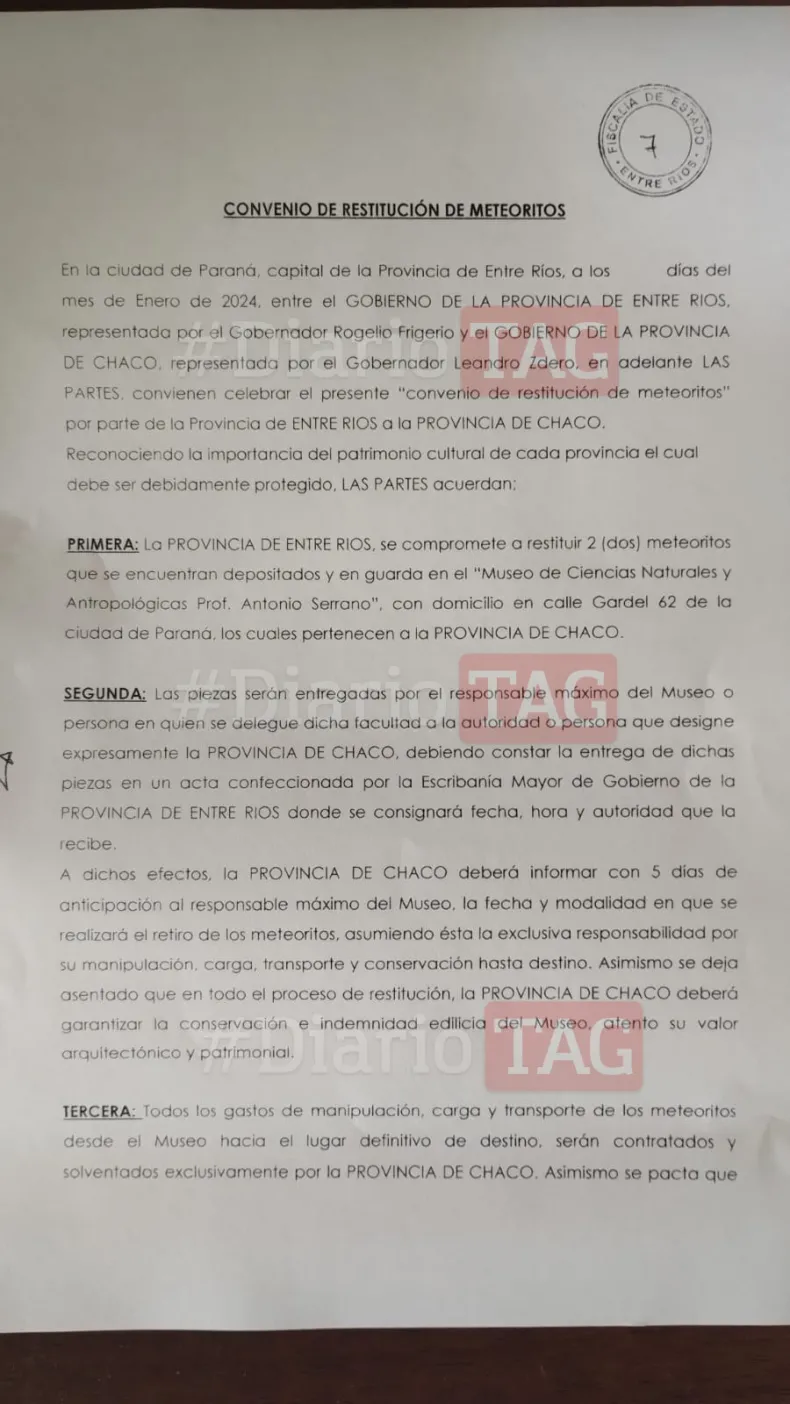 Es preciso destacar que, en el 2017, Livio Gutiérrez y Federico Valdez habían iniciado un juicio contra la provincia de Entre Ríos para el recupero de los meteoritos. El proceso judicial fue iniciado en el Juzgado Federal de Zunilda Niremperger.