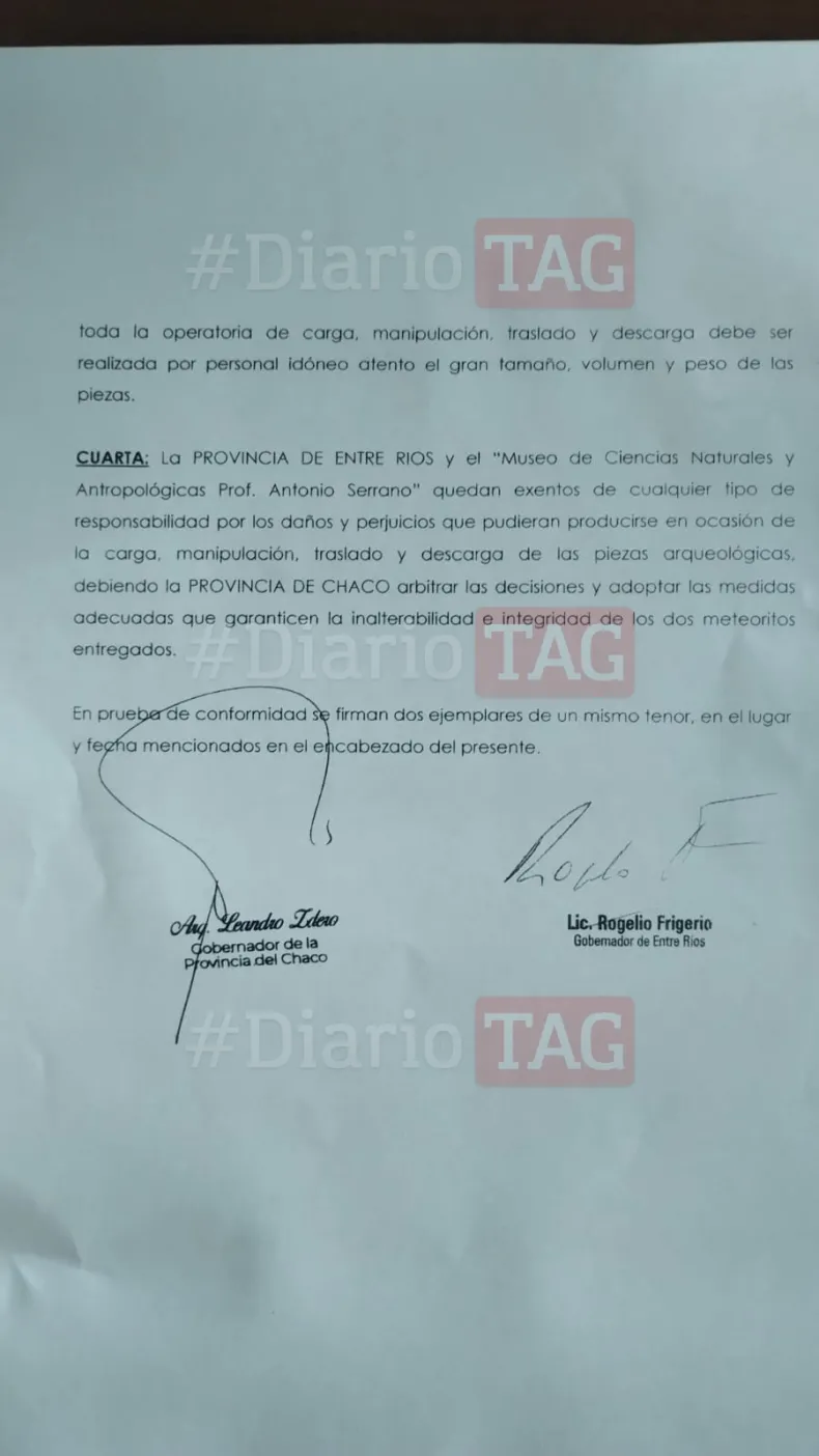 Las actas para el traslado incluyen las firmas de los fiscales de Estado de ambas provincias, puntualmente de Roberto Alejandro Herlein, de Chaco, y del entrerriano Julio Rodríguez Signes. Este paso se llevará a cabo este martes.