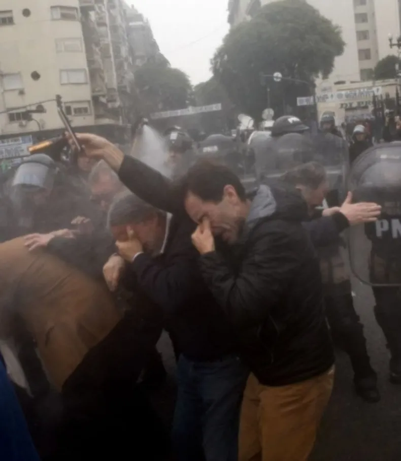 En un tenso contexto donde los senadores se encuentran debatieron la Ley Bases y el paquete fiscal, en las calles, numerosas personas se expresan en contra del proyecto. En consecuencia, este miércoles por la siesta se hicieron virales distintos videos e imágenes donde se puede observar como los efectivos policiales les rocían gas pimienta a los manifestantes.