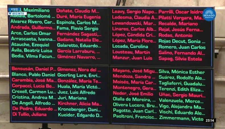 Al realizar por segunda vez la votación, la misma salió empate: 36 positivos y 36 negativos. Por lo tanto, Victoria Villarruel se encargó de definir la votación.